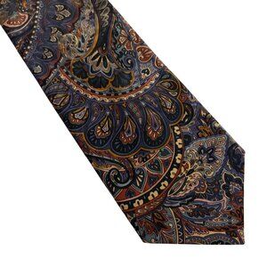 Manhattan Extra Long Paisley Tie Mens Poly Necktie USA Brown Blue Office Formal