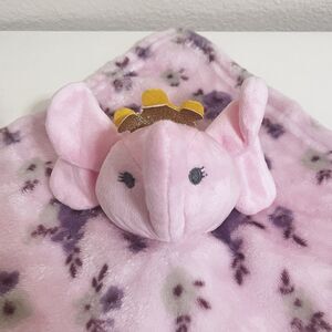 Manhattan Kids Babe Luxe Pink Elephant with Crown Security Blanket Lovey Lovie Blankie Flowers. Has been loved and washed. Adorable pink plush elephant wearing a gold glitter crown and a floral print blanket. Normal wear and tear from use and the glitter portion of the crown has separated from the felt backing - Please See the Pictures. Still has a ton of life left.