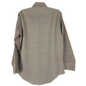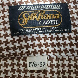 Manhattan Silkhana Mens Long Sleeved Shirt Houndstooth Brown White Sz 15.5-32