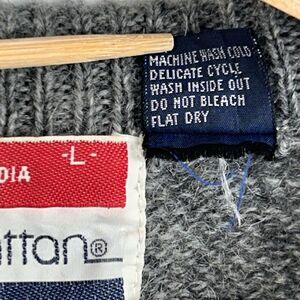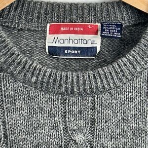 Manhattan Sport Men's Large VTG Wool/ Acrylic Cable Knit Sweater Gray