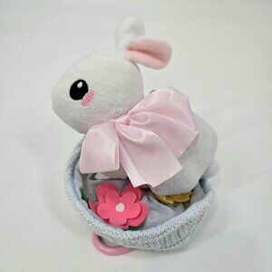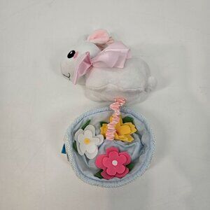 Manhattan Toy Bunny in Basket Musial Pull Toy Easter Plush Flowers Spring Knit
