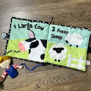 Adorable Manhattan Toy Company Farmyard Friends soft fabric book. Approx. 7x7. In excellent used condition. Theres “crinkly” spots on pages for tactile interest. There’s a very faint spot on the sheep page under the top sheep. Comes from pet/smoke free shop. A4 #0136