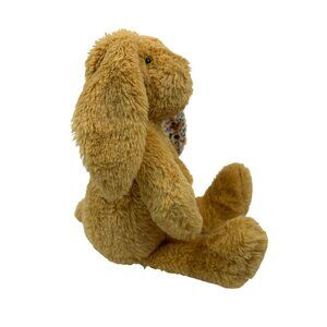 A cuddly plush bunny featuring a soft brown fur and charming floral print inner ears.