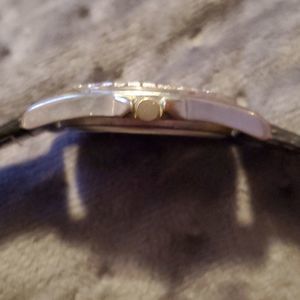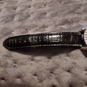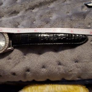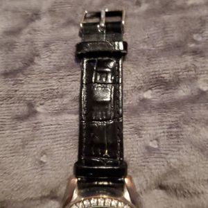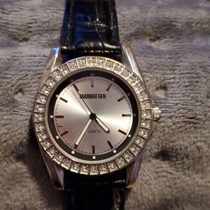 Manhattan by Croton Women's Silver Crystallized Bezel Watch CM404246 Black Band