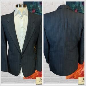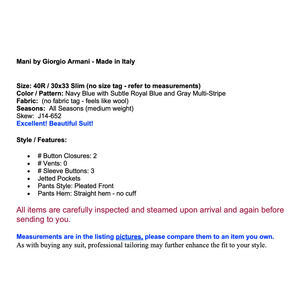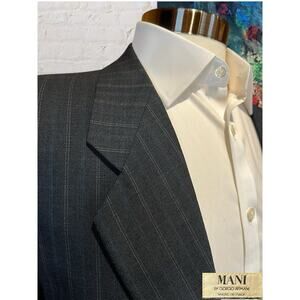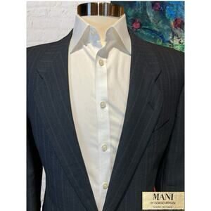 Mani Giorgio Armani 40R 30x33 Slim Mens Navy Blue Royal Stripe Designer Suit