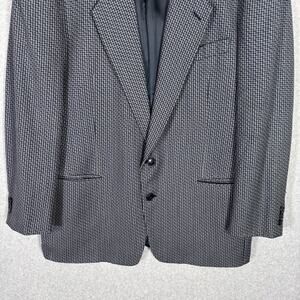 Mani Sport Coat Blazer 42L Blue Gray Wool Silk Tweed Houndstooth Made Italy Saks Zig Zag Plaid 2 Button Single Breasted 4 Button Sleeve Preppy Academia Collegiate