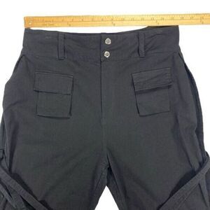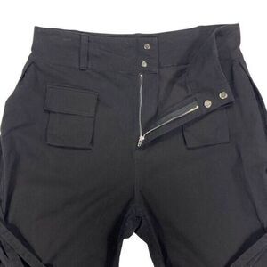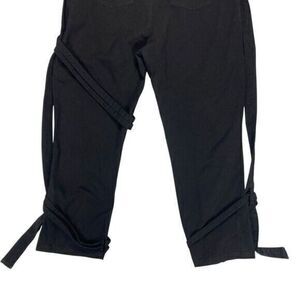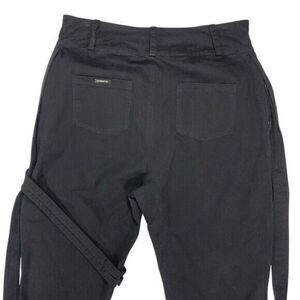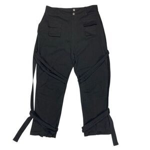 Stylish straight leg pants. Features unique strap detailing. Perfect for a modern look.