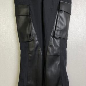Maniere De Voir Cargo Pants Womens US 4 Black Faux Leather Flare V Waist 33"
