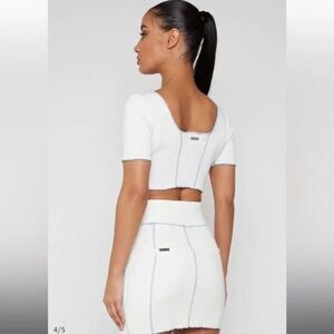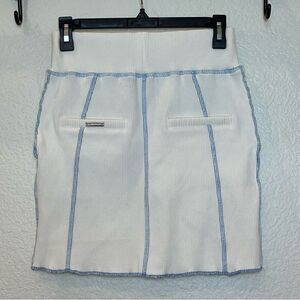 Maniere De Voir NWT! Ribbed Raw Hem Mini Bodycon Skirt in White/Blue size 4 UK8