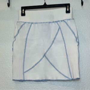Maniere De Voir NWT! Ribbed Raw Hem Mini Bodycon Skirt in White/Blue size US 4 UK 8