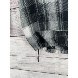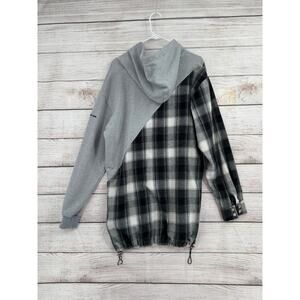 Item: Maniere De Voir Split Flannel Fleece Hoodie Womens 8 Gray Black White Drawstring
