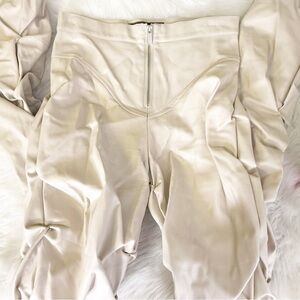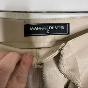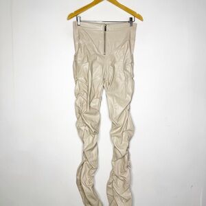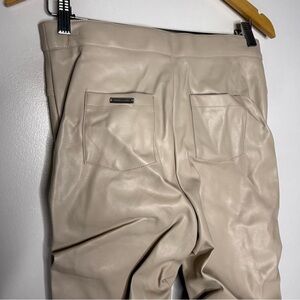 Maniere De Voir Stacked Vegan Leather Pants Beige US 6 UK 10