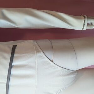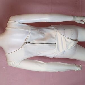 Maniere De Voir White Bodysuit with Faux Leather Trim Banded Waist size UK 14