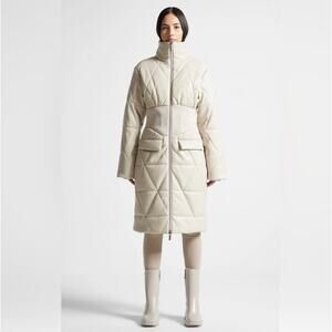 Maniere de voir Quilted vegan leather Off white Puffercoat, Cream Corset Waist