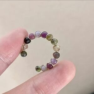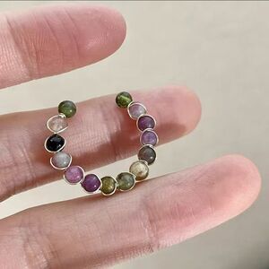 Rainbow Tourmaline Cuff Open Ring, Fashion Beaded Ring, Elegant Vintage Index Finger Ring: