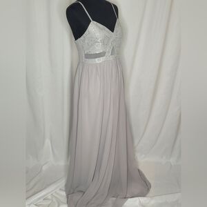 Maniju Gray V-Neck Lace Top Spaghetti Straps Floor Length Chiffon Skirt - Size L