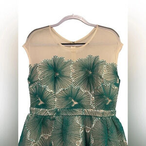 Maniju Green Brocade Embroidered Cocktail Dress Retro Pin Up Style
