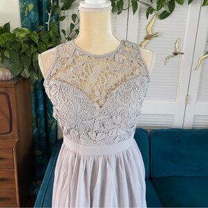 Maniju Lulus Savannah Nights Sleeveless Open Back Gown Maxi Dress Grey Gray New