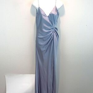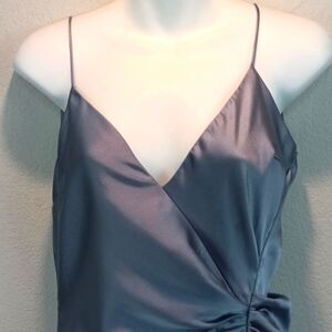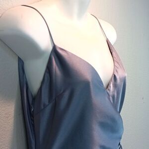 Maniju Women Strappy V Neck Dusty Blue Satin Slip Maxi Dress sz S Wedding Prom