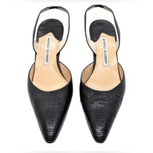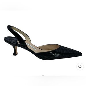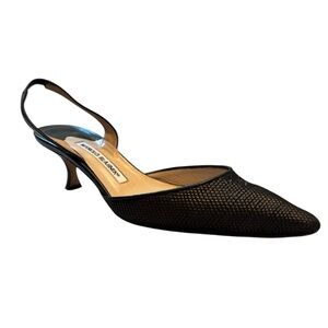 Manila Blahnik Raffia Pointed Toe Kitten Heel Slingbacks