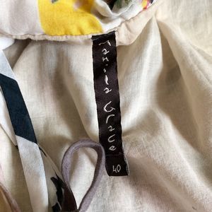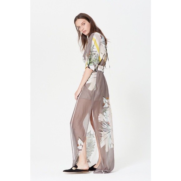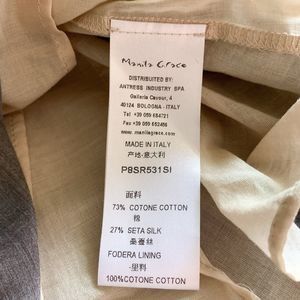 This stunning Manila Grace maxi dress is perfect for any occasion, especially for a beach vacation. The multicolor abstract tropical print on silk and cotton blend material is eye-catching, while the short sleeves and open back add a touch of elegance and style. The dress also features a side slit accent, side zip closure, and short slip lining, and is a size 40 (US 6) regular fit. Perfect for any fashion-forward woman, the dress is sure to turn heads and make a statement.