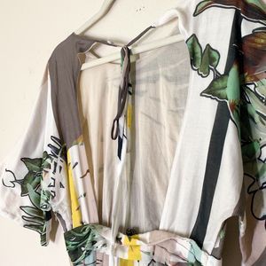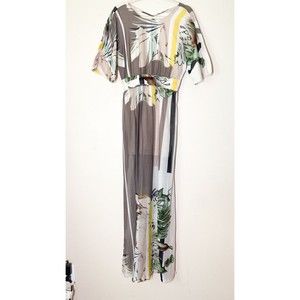 Manila Grace Short Sleeve Maxi Dress size 40 US 6 Open Back Abstract Tropical