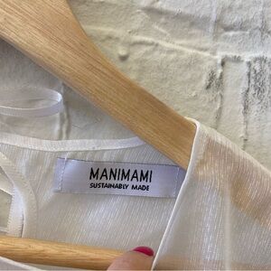 Manimami || Boxy Puff Sleeve Sheer Top Blouse Topper Crop White