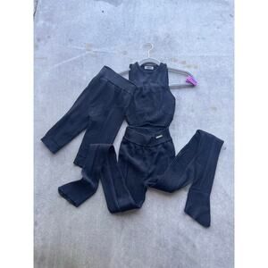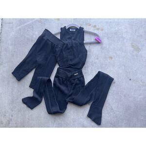 • Bottoms: High-waisted full-length leggings with matching ribbed design