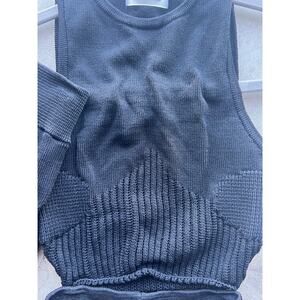 Chic and modern Manière De Voir two-piece seamless ribbed activewear set in black. Includes: