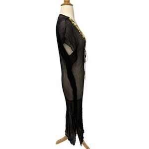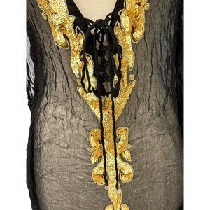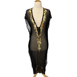 Manish Vaid Dress Cover-Up Size M Black Gold Embellished Resort Beach Poolside