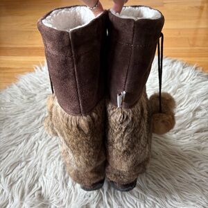 Manitobah Mukluk Snowy Owl Cocoa Suede Rabbit Fur Waterproof Snow Boots EUC 8.5