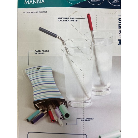 Manna Stainless Steel Reusuable Straws 13 Piece Set with Cleaning Brushes NEW