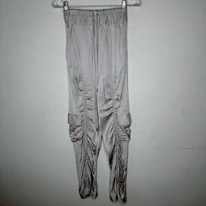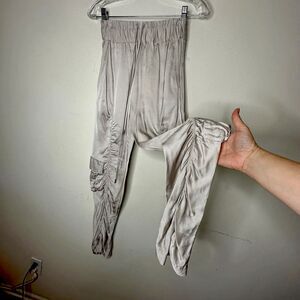 Manning Cartell Off Duty Metallic Silvery Taupe Ruched Satin Drawstring Jogger With Pockets
