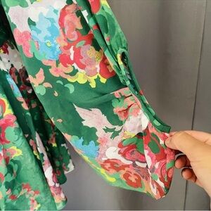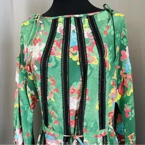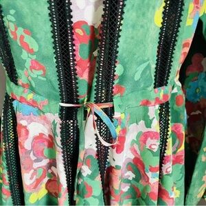 Manning Cartell Semi Sheer Silk Dress Women Size 0 Fits Small Floral Green $550.
