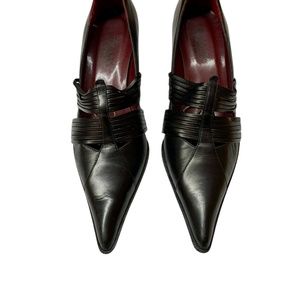 Pointed Toe, 2” Composite Stiletto Heels, Peek-A-Boo Leather Straps with Elastic for Flexibility, Made in Italy