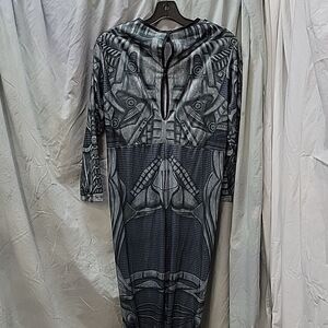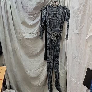 A nice costume for your super Hero fan. It is a child's size Large (8-10) General Zod. It includes the jumpsuit with attached boots, cape and belt.
