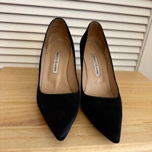 Manolo Blahnik's suede 'BB' pumps have been meticulously handmade in Italy by skilled artisans. They're set on slim stiletto heels that add the perfect amount of height and have sleek pointed toes. The black hue will complement virtually anything.
