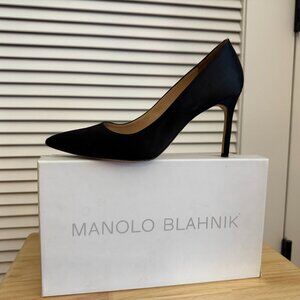 Manolo Blahnik BB 90 Black Satin Size 9 With Box