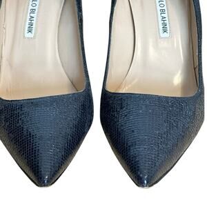 Manolo Blahnik BB 90 Navy Blue Leather Pointed Toe High Heel Pump