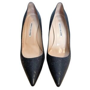 Manolo Blahnik BB 90 Navy Blue Leather Pointed Toe High Heel Pump 40