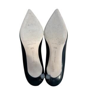 A gorgeous and classic pump, perfect for the office or a night out, these are a beautiful high shine kid leather with leather insole and outsole. Very well taken cared for in liie new condition, exterior is pristine, a closet staple!
