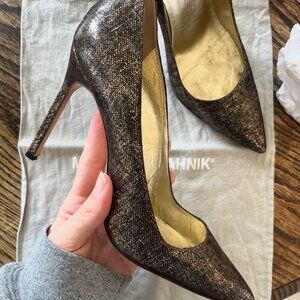 Manolo Blahnik BB Pumps Dark Gold Glitter Bronze Metallic