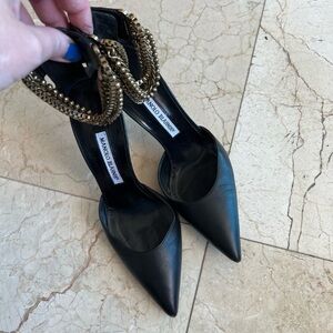Manolo Blahnik Black Chain Heels Shoes