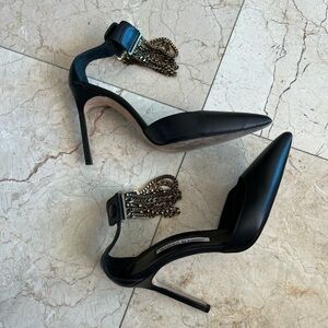 Manolo Blahnik Black Chain Heels Shoes