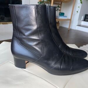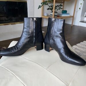 Manolo Blahnik Black Leather Ankle Boots, Size 37.5
