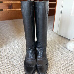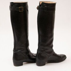 Manolo Blahnik Black Leather Tall Riding Boots – Made in Italy – Size 37.5