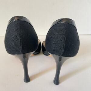 Manolo Blahnik Black Open Peep Toe Canvas and Patent Heels Shoes • Size 36