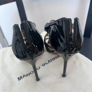 Manolo Blahnik Black Paten Leather Stiletto Heels - Size 40
