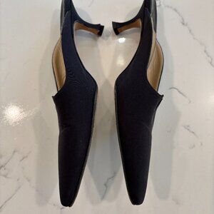 Manolo Blahnik Black Satin Faille Kitten Heel Slides / Mules - Sz 37 .5
