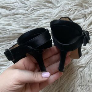 Manolo Blahnik Black Satin Slingback Bow Accent Heeled Strappy Sandals EUC Sz 36